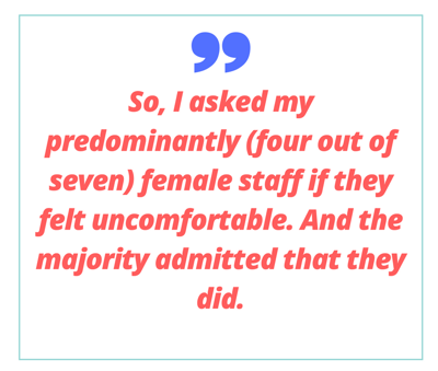 So, I asked my predominantly (four out of seven) female staff if they felt uncomfortable. And the majority admitted that they did.