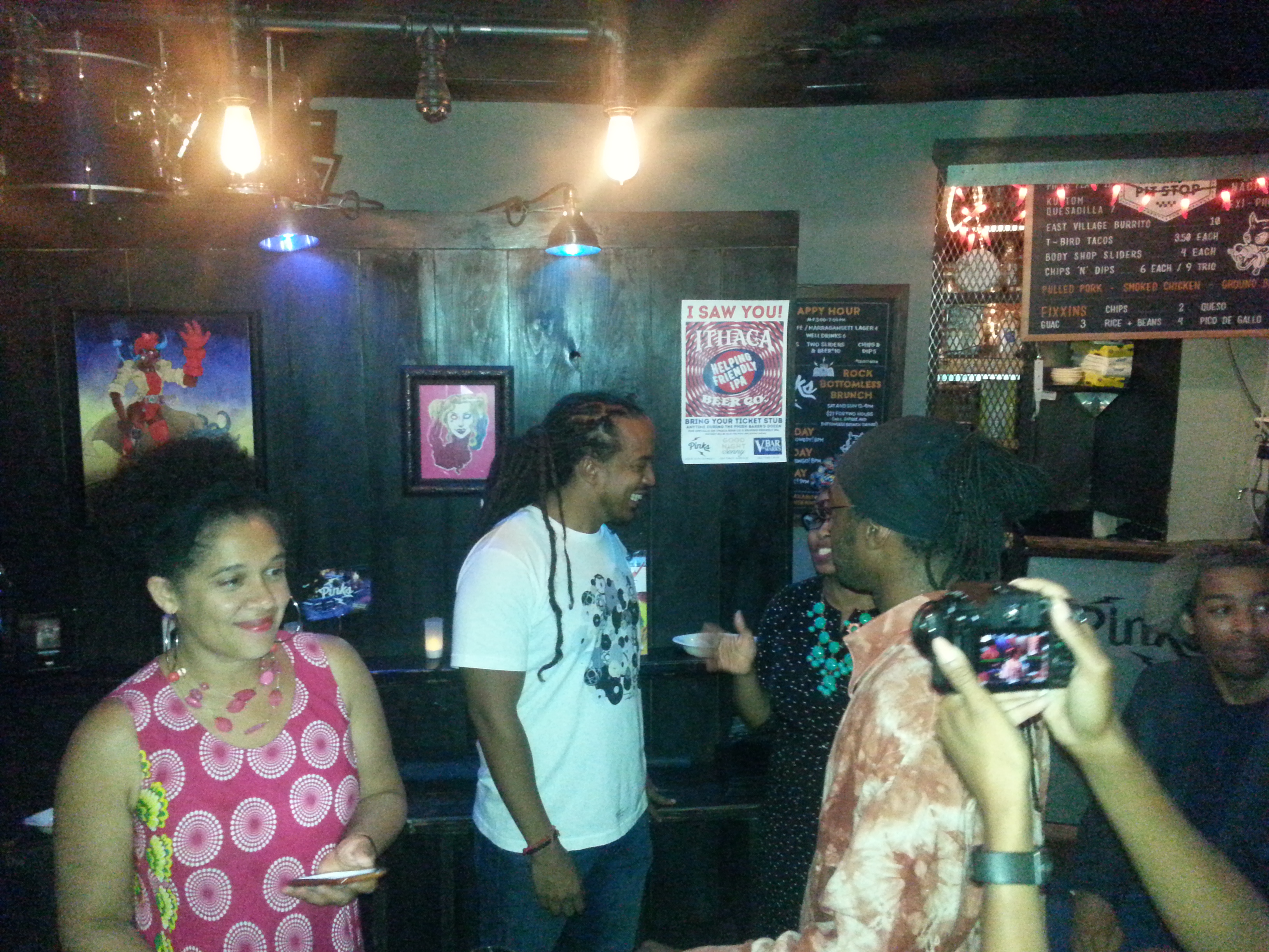 For the next two weeks, Pink’s Bar, in New York’s Lower East Side, will host the Fan Bros Art Show, a display of sci-fi & comic art. Opening night of the Art Show was led by the Fan Bros Away Team of Tatiana King Jones (the Grand Duchess of Tech, also known as the Uhura of the Spaceship, the Black Russian, the black Rogue, also known as Sean-Jean Picard), DJ BenHaMeen (Wakanda’s favorite DJ, Doctor Who’s man’s is this, the Anti-Trife Equation, the Captain Kirk of the Spaceship), and mission specialist/art curator Murjani “Murj” Holmes (aka Murj the curator, aka Art Master Murj).