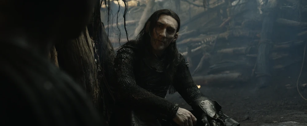 So the idea that an Elf would ally with Sauron is unlikely…but not impossible. And we don’t actually know that Adar (‘Father’ in Sindarin) is teaming with the Dark Lord. However he does drop all kinds of mysterious dialog in convo with Arondir. Stuff like “I am not a god…yet,” and reminiscing about his days back in Beleriand, along the river Sirion, where Arondir was born. Beleriand was destroyed after the Great War at the end of the First Age so this makes both Elves quite old in human years.
