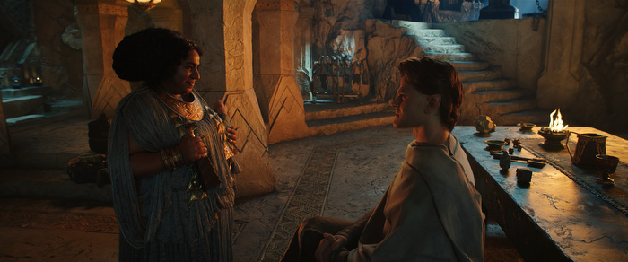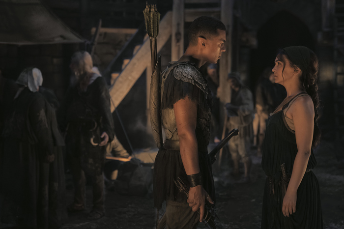 Pharazon, Miriel’s cousin and chancellor, is also revealed to be fomenting this anti-Elf sentiment, but he calms the crowd by buying a round – a tactic that Halbrand took last episode suggesting that Numenoreans are borderline alcoholics. Pharazon also has a kind of weasley son, Kemen, who is in architecture school with Earien, Elendil’s daughter, and takes her out on a date of sorts. Kemen is useful as someone for Pharazon to talk to and reveal he is not totally on the up and up.