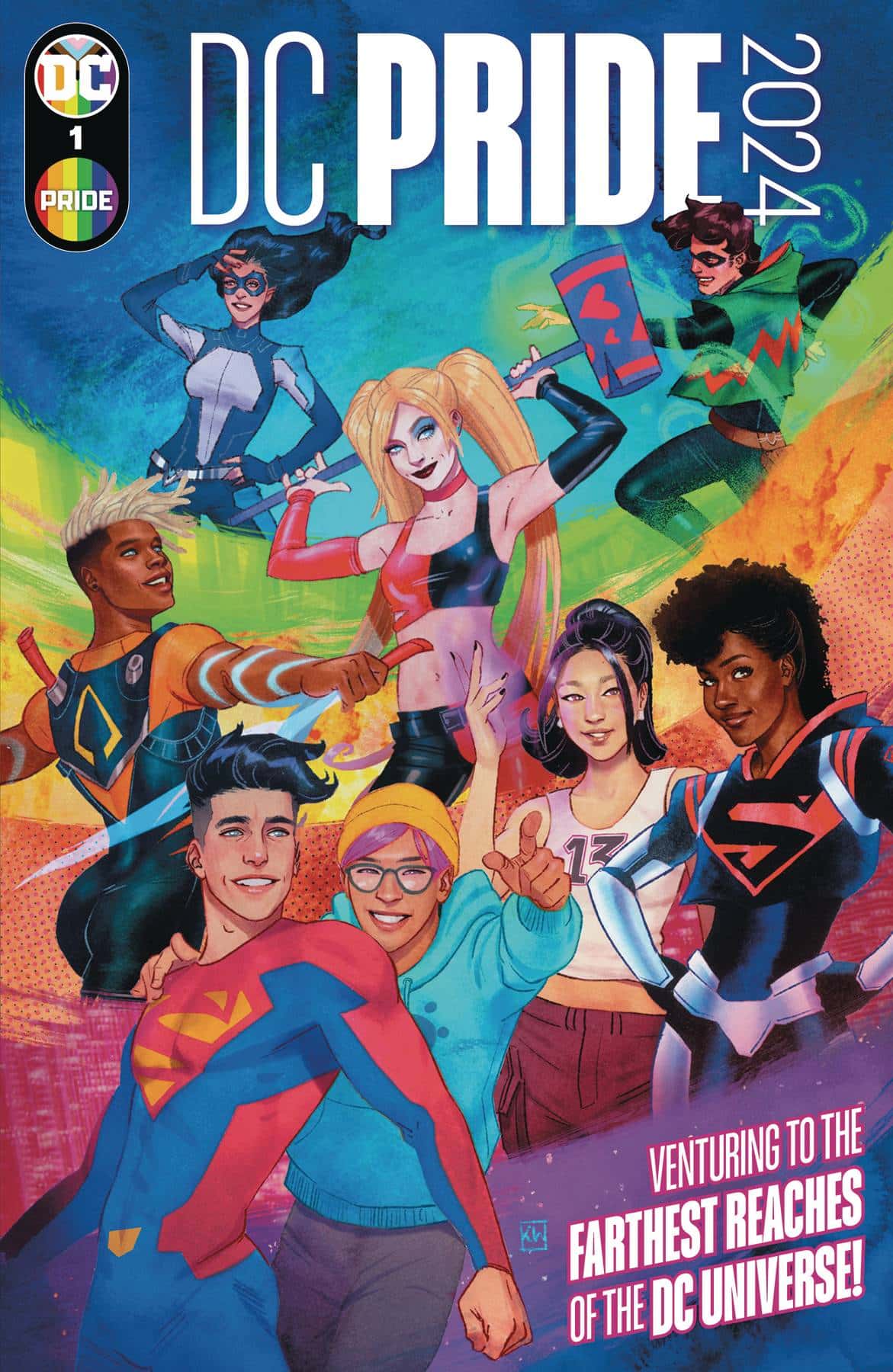 DC’s Eisner and Ringo award-winning Pride anthology returns in the form of a universe-spanning travelogue like you’ve never seen! In its pages, Dreamer makes a first-time pilgrimage to her ancestral planet, Naltor! Poison Ivy and Janet from HR go spore-hunting on Portworld! Superman (Jon Kent) gets the boys together for a night out in A-Town, but things go sideways when The Ray vanishes into thin air! Steel (Natasha Irons) works up the courage to face Traci 13 at the Oblivion Bar’s Pride party for the first time since they broke up! Aquaman (Jackson Hyde) catches an unexpected ride to the Fourth World just in time for their annual Love Festival! All this and more in a volume celebrating how the LGBTQIA+ community is everywhere and belongs anywhere–even the very furthest reaches of the universe.