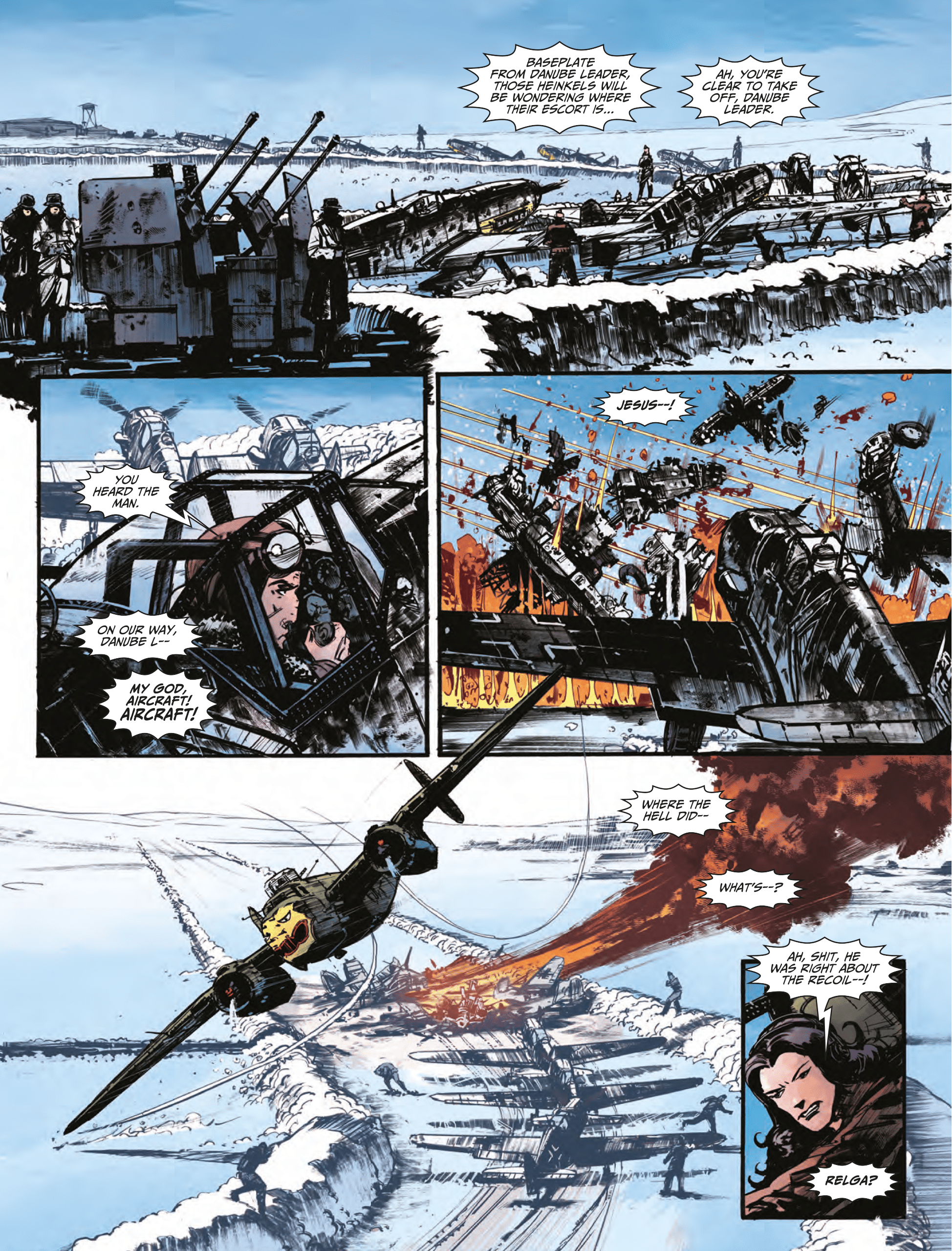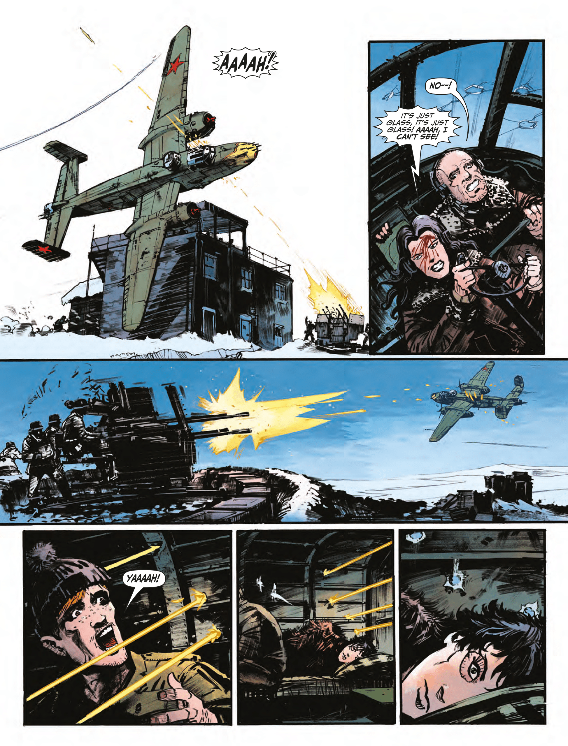 Battle Action #8 features two stories filled with blistering battle action! Johnny Red: A Couple of Heroes by Garth Ennis and Keith Burns sees the Flying Gun turned loose in all its devastating firepower, as Johnny takes off on one last mission of his own. And then, in Nina Petrova: The Lucky Ones, writer Torunn Grønbekk and artist Patrick Goddard team up for a flashback! Nina must rescue Masha from a field hospital before the German invasion overruns the facility…