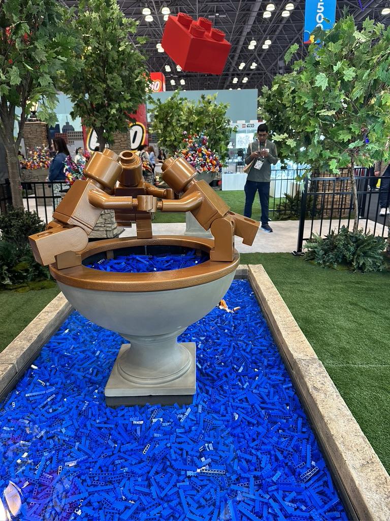 Lego didn’t allow any reporting on their new sets but if you can imagine more Marvel, DC, Star Wars, and Ninjago sets, you get the idea. For the “public” there was Central Park, a large area in front of the Lego compound that showcased their adult-focused Botanical flower line, complete with benches and fake fountains. This was an amazingly peaceful place to hang out, surrounded by fake trees and grass, and I spent quite a bit of downtime there, relaxing over ice cream with a pal.