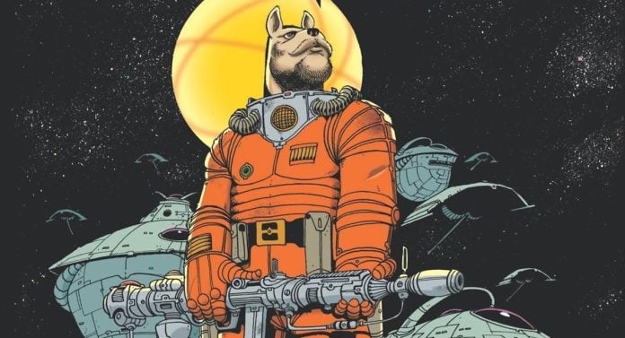 But the reason the playfulness in the art works so well is that Strnad’s scripting is just as in on the light tone. Although, I wouldn’t call Dalgoda a frivolous or surreal comic. It’s actually pretty heavily grounded, as odd as that feels to write about a book starring a dog-man. The premise and sci-fi elements are thoughtful to the point of believability. It’s not a hard sci-fi story that gets too mired in things like physics or theory, but it does make a point to create a world that feels familiar, possible and lived, doing so with everything from the way the characters act to the sort of discrepancy that pops up throughout between futuristic and anachronistic designs.