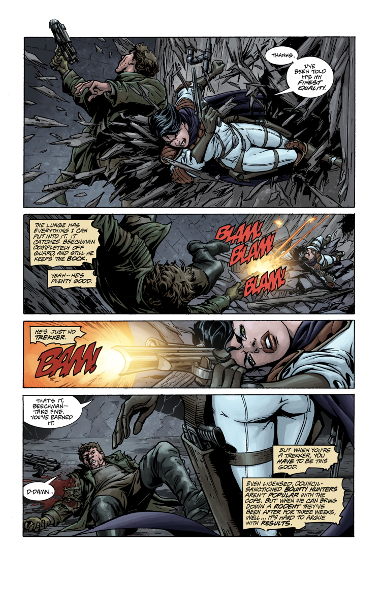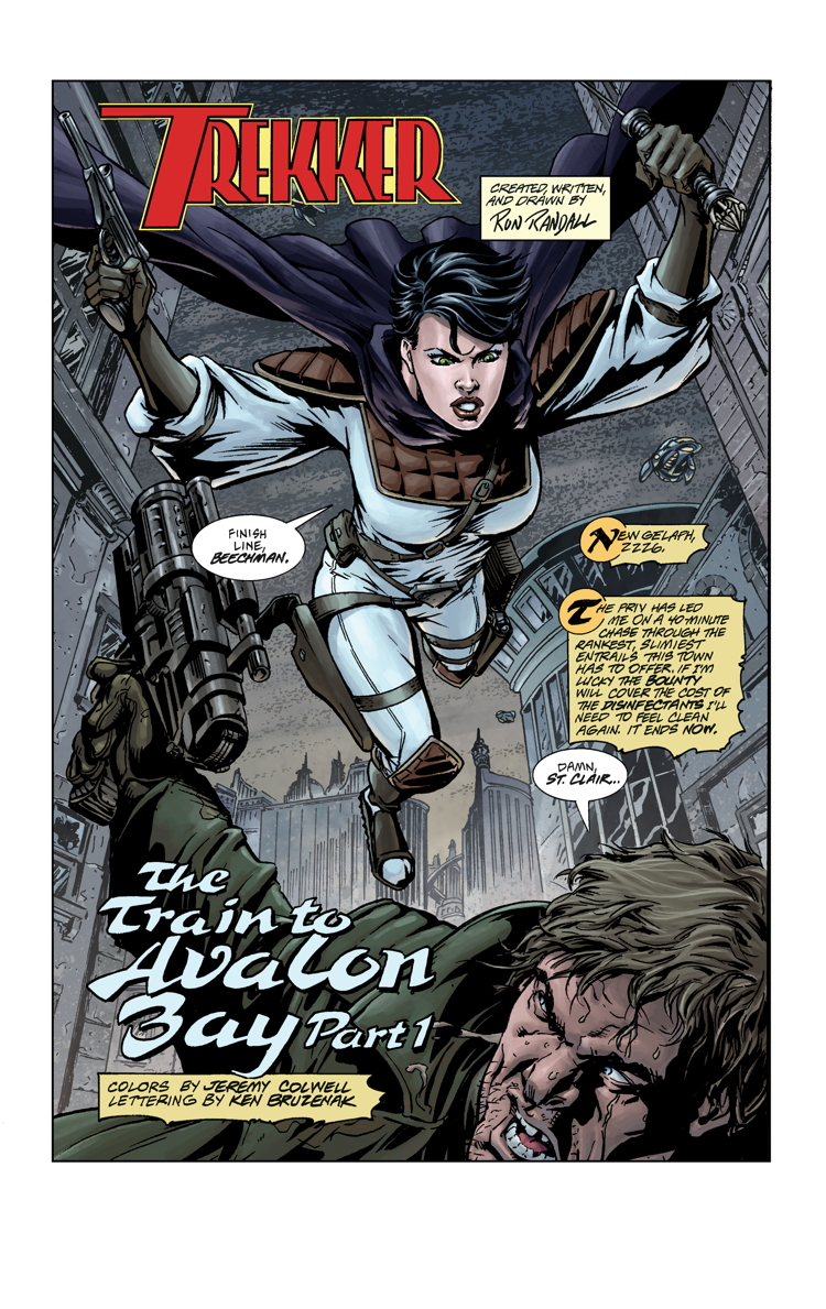 Looking for a strong comics heroine who wears a reasonable amount of clothes and has a lot of kick-ass adventures? Look no further than TREKKER, Ron Randall’s long running SF bounty hunter who debuted many moons ago in Dark Horse Presents. Mercy St. Clair has been back as both a webcomic and a new serial in the new DHP, scheduled to begin next month. The new tale is called The Train to Avalon Bay.