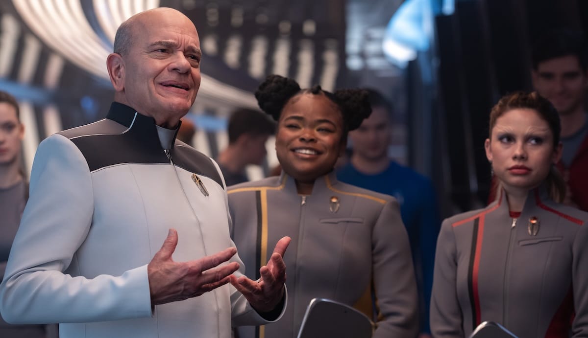 Both sets of actors are well cast. The cadets are played by fresh new faces who all bring solid performances to the material they’ve been given to work with. Meanwhile, the returning characters – The Doctor (Robert Picardo), Jett Reno (Tig Notaro) and Admiral Vance (Oded Fehr) – all bring more of what made us fall in love with them in the first place. And newcomer Lura Thok (Gina Yashere), an interesting character who is both Jem’Hadar and Klingon, will swiftly win viewers over. Plus, Stephen Colbert performs the voice for the Digital Dean of Students. While we tend to prefer feminine voices for Starfleet computers, Colbert was well-cast and is a more-than-welcome addition.