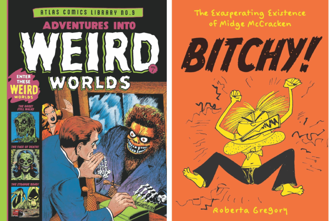 The report we have is that the ship has limped to a safe port, where we await further news. Our thoughts are with the crew, and we hope and pray for their safety.The two books, The Atlas Comics Library No. 9: Adventures Into Weird Worlds Vol. 1 by Russ Heath, Bernard Krigstein, Bill Everett, Joe Maneely, Carmine Infantino, et al. and Bitchy! The Exasperating Existence of Midge McCracken by Roberta Gregory and Helen Chazan, were printed in India and were bound for the Port of New York.Both books had been scheduled to go on sale in early June, but that timeframe now seems unlikely. If the books themselves were not damaged and the crippled ship’s cargo can be offloaded to another vessel and that vessel can then safely exit the danger zone, it could add a month or more to the delivery time.We have no information on the cargo ship’s itinerary, but our speculation is that it was dropping off other cargo from India to that region or picking up additional cargo bound for the U.S.Bitchy Bitch is most exasperated by this unexpected turn of events, echoing the title of one of Weird World’s horror stories “When a World Goes Mad!