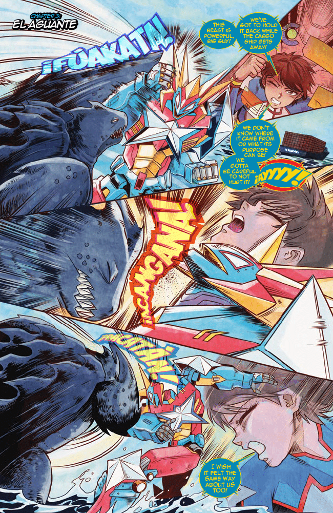 The story follows La Borinqueña’s ‘Defenders of Puerto Rico’ team The Nitaínos as a kaiju threat rises from the Puerto Rico Trench. Given the size of the creature, V-G1GANTE is the best option available to contain it.