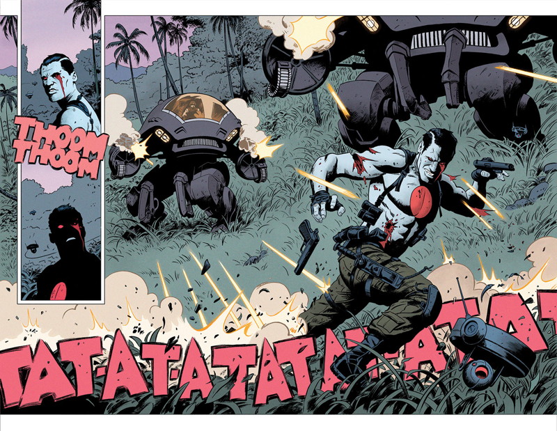 Bloodshot’s nanites made him a nearly unstoppable killing machine. His enhanced strength, speed, endurance, and healing made him the perfect weapon, and he served his masters at Project Rising Spirit – a private contractor trafficking in violence – very well.