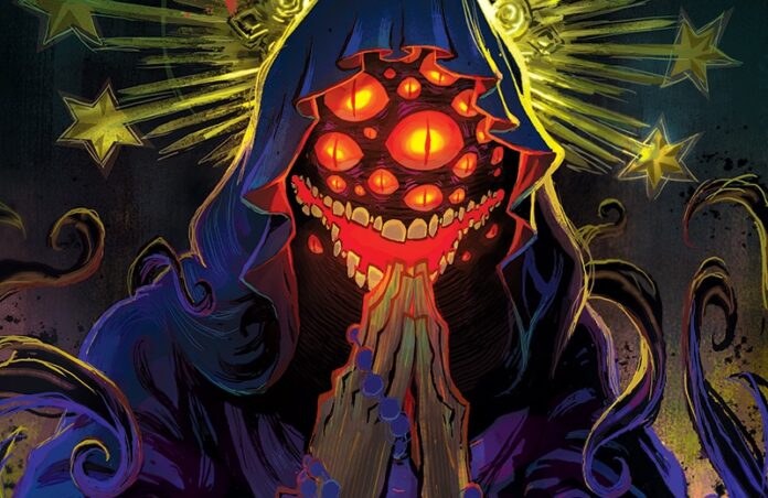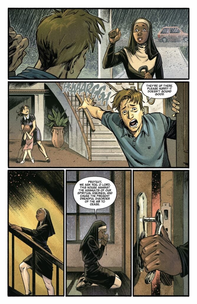 “After working with Tiago Palma, Manual Rodriguez, and Jim Campbell on other comics, I knew they were the dream team for Excommunicated and they delivered in spades, perfectly capturing the characters, Boston locations, demonic horrors, and…maybe a little gore,” Robinson adds. “The result is a book that I’m very proud of and super excited for people to read. It’s weird to be a fan of something I played a part in creating, but I am a fan of Sister Josephine and Edimmu!”