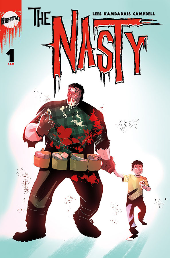 In The Nasty, eighteen-year-old Thumper Connell still has an imaginary friend: the masked killer from his favourite slasher film. Thumper is obsessed with horror and always has been. He fills his time with scary VHS rentals and hanging out with his fellow fans, The Murder Club. But everything changes when his local video shop acquires one of the notorious films known as “video nasties” – films so scary, they’re the target of the British Moral Decency League’s crusade to ban and burn. But it’s only a movie, right? It’s all just imaginary, isn’t it? The Nasty is co-created by writer John Lees and artist George Kambadais, with letters by Jim Campbell, and design by Tim Daniel.
