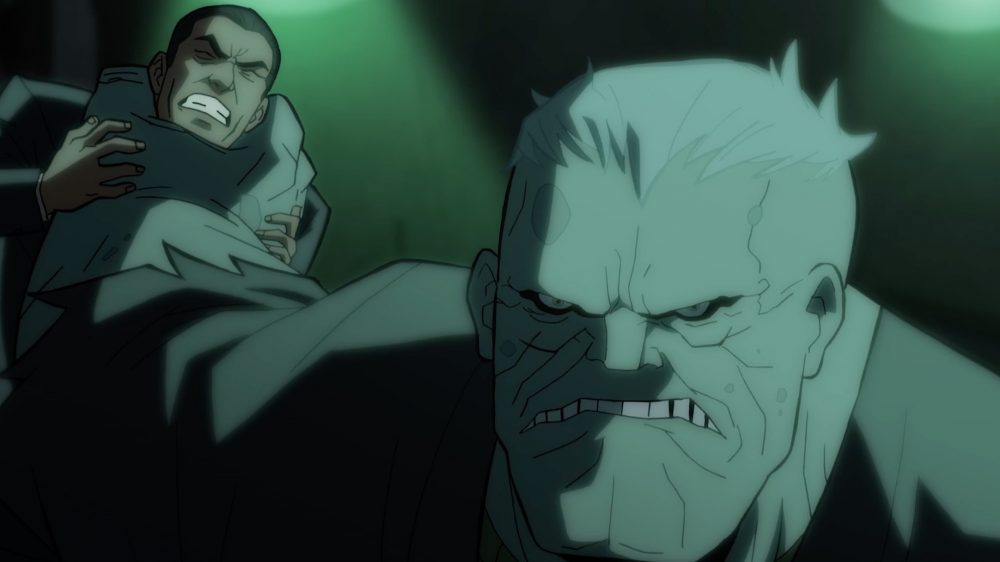 Batman is forced to fight battles on multiple fronts – in pursuit of the Holiday Killer, attempting to halt a mob war, and dealing with a rising group of Gotham City’s villains, including those far beneath the streets – in Batman: The Long Halloween, Part One. Solomon Grundy, voiced by Fred Tatasciore (American Dad!, Family Guy), mostly keeps to his home in the sewers … until provoked.