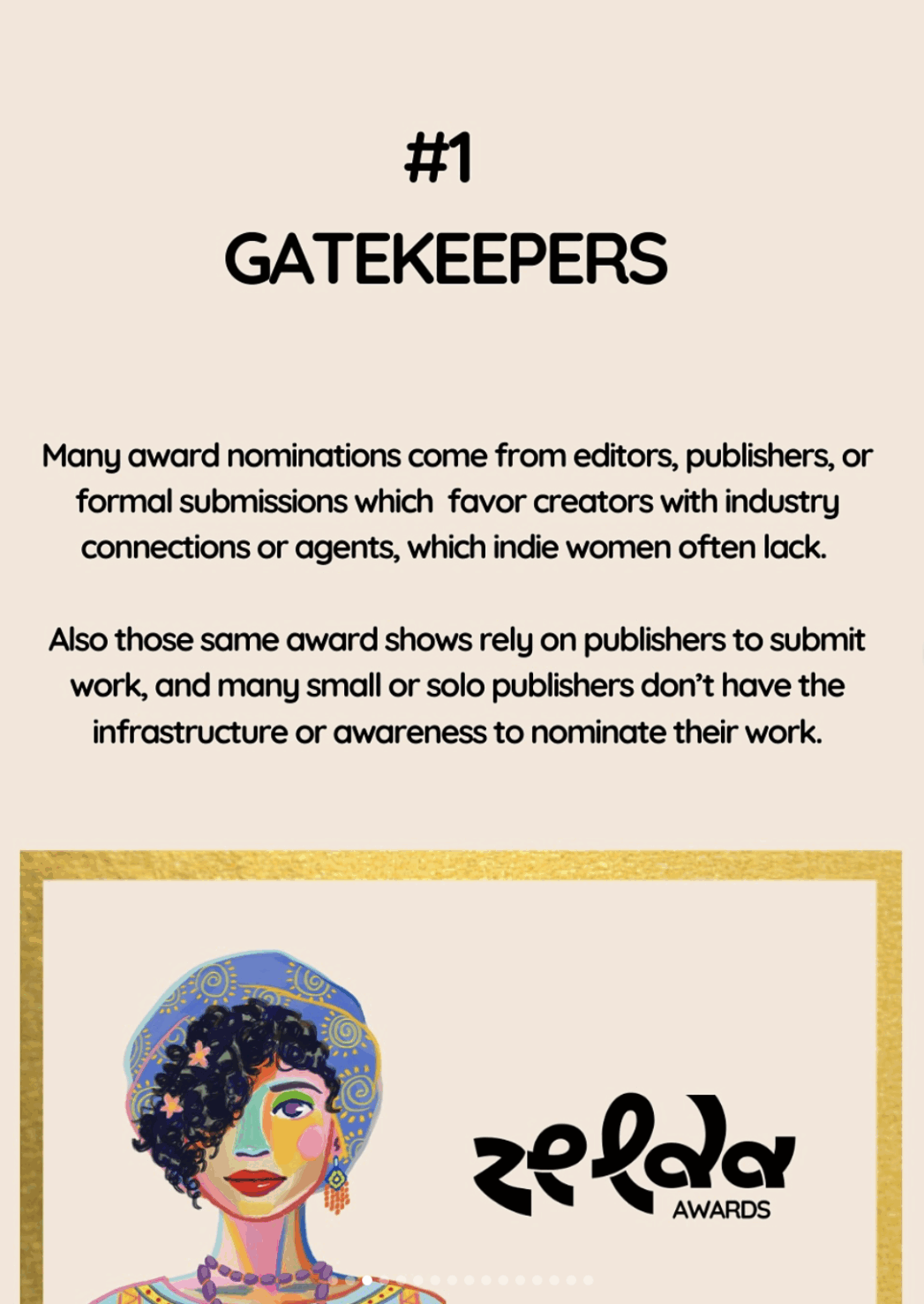 Following in the footsteps of the Lulu Awards, which ended in 2009, the Zelda Awards aim to spotlight the women creators who are often underrecognized by the comic book industry’s more established awards. On Instagram, the Zelda Awards committee, which consists of Keisha Parks, Sarah Cooke, Andrea Rose Washington, Carolyn Watson Dubisch, Jocelyn Short, Mary Bellamy, and Melissa J Massey, broke down why the Zeldas are needed NOW, why men have been dominating comic book awards for so long, and why women creators, especially indie ones, still remain virtually invisible during awards season. The reasons include gatekeeping, low marketing budgets, genre and format bias, underrepresentation in judging panels, and ignorance of the challenges of intersectionality.