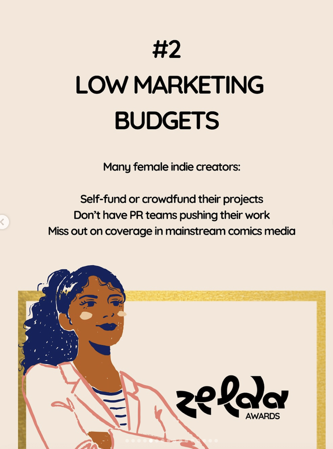 She continues, “The Zelda Awards are for the women who are changing comic book culture— from the page to the panel, from the mic to the movies. Whether you’re a seasoned legend or a rising star, this space is for you.”