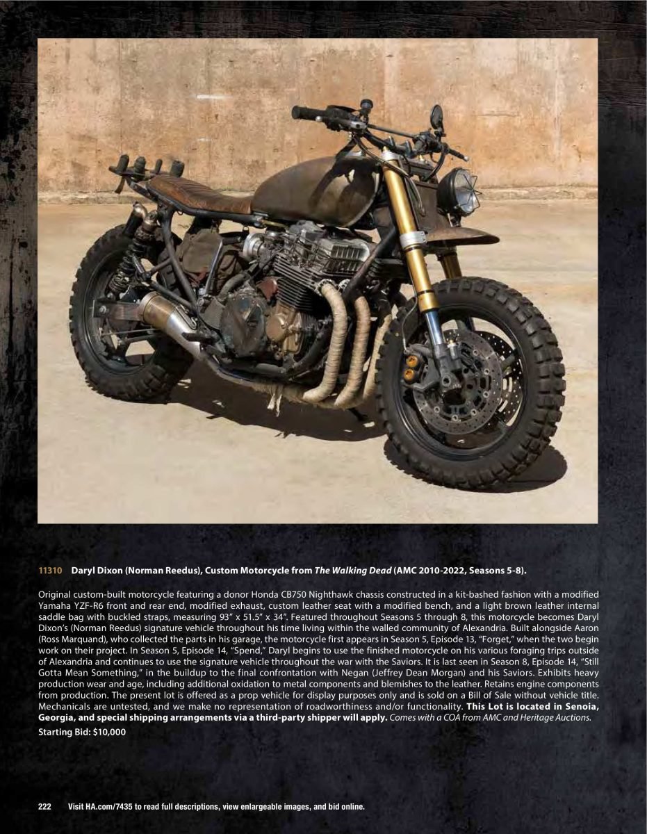 The Walking Dead has become a staple of American television, with the original show running for 11 seasons and seven separate spinoff series. Now, Heritage Auctions is giving fans of the television show a chance to get their hands on screen-used props, costumes, prosthetics, set pieces, and even vehicles (like Dale’s RV and Daryl’s motorcycle) from the show.