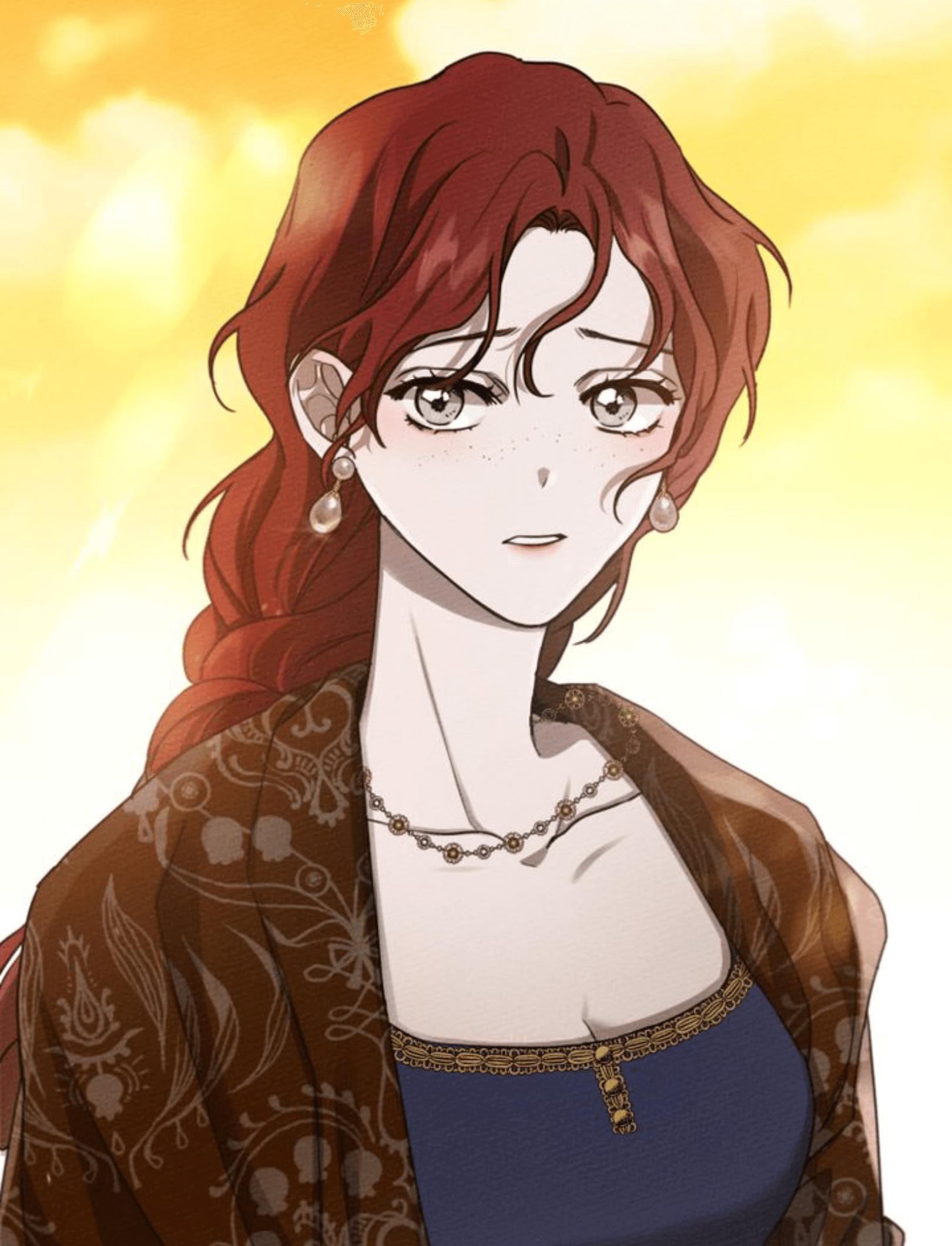 What Riftan lacks in backstory, he makes up with his gorgeous body. He’s the definition of eye candy, and with his wardrobe consisting mainly of blacks or greys, Maxi shines all the more with her flaming red hair and gorgeous dresses. Her wardrobe is full of bright colors and dazzling, intricate ornaments, and she adorns stunning, lavish jewelry that probably left a small dent in Riftan’s pockets, though I think me and Riftan are on the same page that she deserves everything and more! There’s not a single panel where she looks less than perfect.