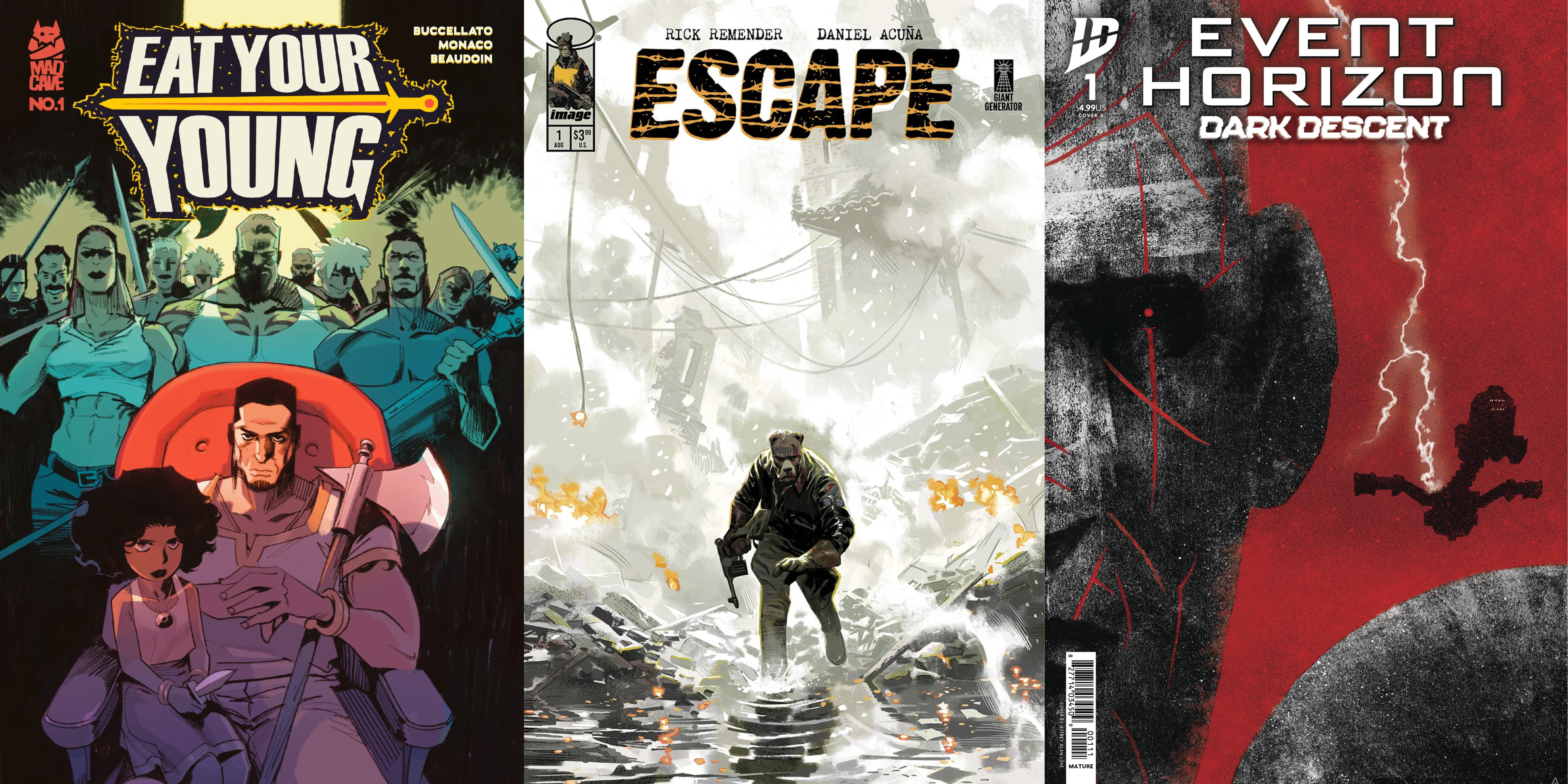 In this week’s Wednesday Comics Reviews, the team reviews the cosmic horror of Event Horizon: Dark Descent, the new Rick Remender comic Escape, some old school Teenage Mutant Ninja Turtles, a Godzilla reprint, and more! Plus, as always … The Prog Report!