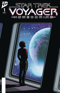 Star Trek: Voyager — Homecoming #1: We’ve all wondered what happened the the U.S.S Voyager after it arrived back at Earth in the final minutes of May 2001’s Star Trek: Voyager series finale, “Endgame.” And while Star Trek: Nemesis, Star Trek: Lower Decks, Star Trek: Prodigy and Star Trek: Picard have given us hints, we’ve yet to have seen the details of the story of Voyager’s homecoming… until now. In Star Trek: Voyager — Homecoming #1, written by Susan Bridges & Tilly Bridges, with art by Angel Hernandez, colors by Charlie Kirchoff and letters & design by Neil Uyetake, Captain Kathryn Janeway and her intrepid crew reach Earth. Presumably, anyway; because as with every other episodic adventure undertaken by Voyager and its crew, getting home proves more complicated than it might seem. Without spoiling anything, suffice to say that this first issue promises more from all the familiar crew members (minus Neelix), along with some intriguing issues obstructing their completion of that goal. Hernandez’s art renders the familiar characters easily recognizable, Kirchoff’s colors bring the panels to life and Uyetake’s lettering is straightforward and well-done. One could easily imagine this is a lot like what the opening salvo of a hypothetical eighth season of Voyager might have looked like. Just remember what Jack Ransom said: this is Voyager — things could get freaky.