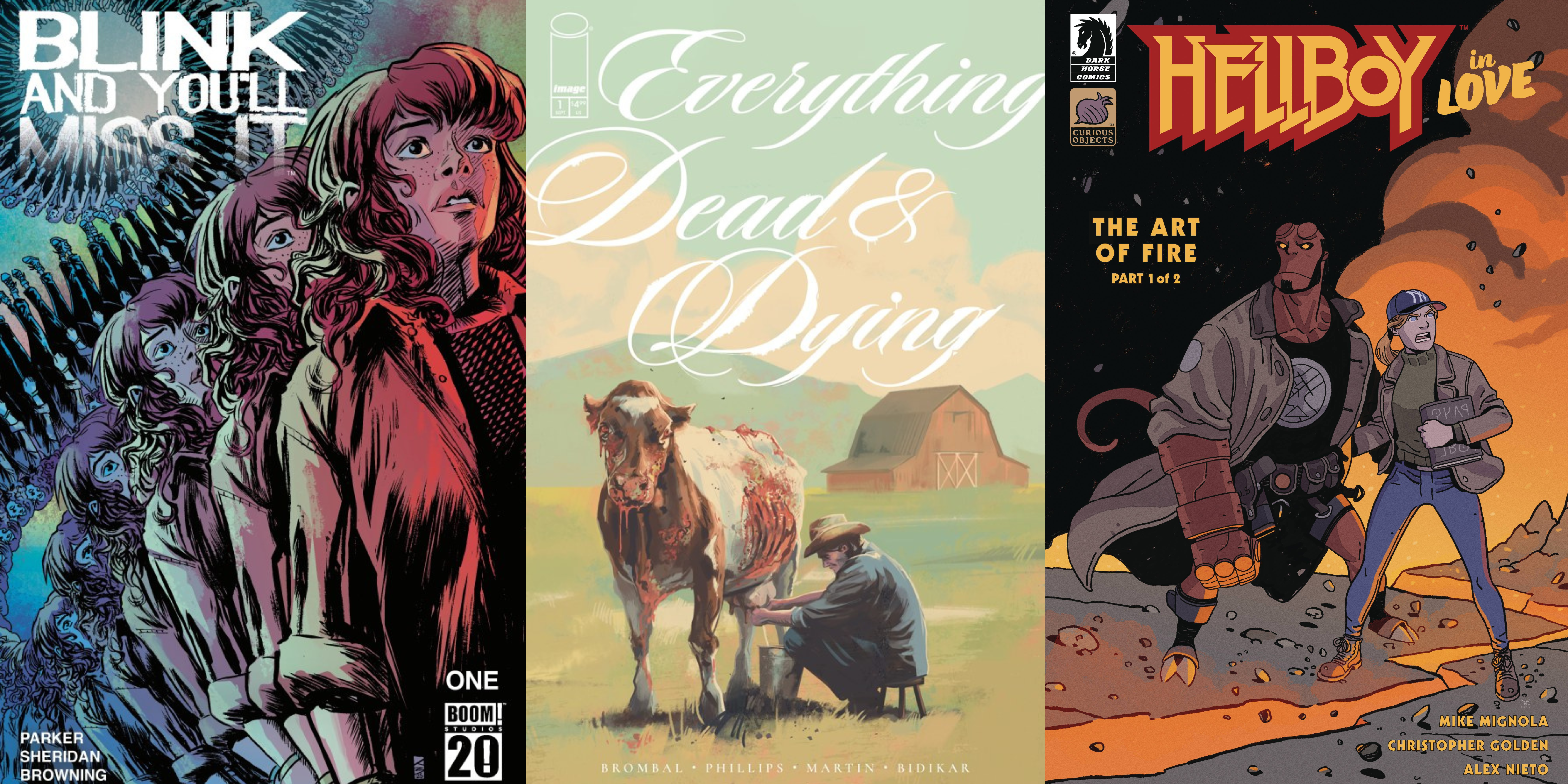 In this week’s Wednesday Comics Reviews, we take a look (heh) at Blink and You’ll Miss It, get romantic with Hellboy in Love: The Art of Fire, take a hike with Godzilla: Escape the Dead Zone, and more! We also look ahead at Everything Dead and Dying #1, the latest from Tiny Onion! Plus, as always … The Prog Report!
