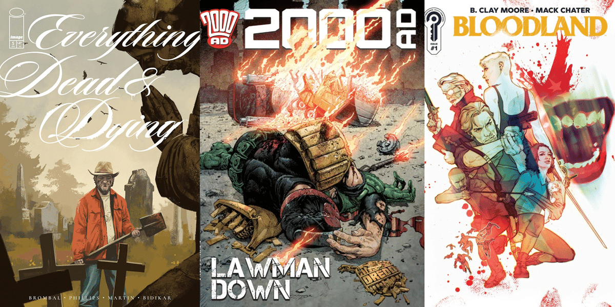 In this week’s Wednesday Comics column, the team braces for a ending with Everything Dead and Dying #5, while covering a pair of new beginnings with Bloodland #1 and Touched by a Demon #1, and more! Plus, Ensign’s Log and The Prog Report!