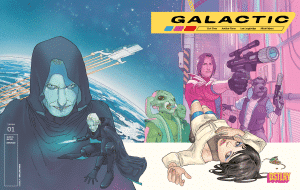 In gorgeous over-sized comics news this week, Galactic #1 is wrapping up its pre-order window this coming Monday. The book — the latest from publisher DSTLRY — is a mash-up of space operas like Star Wars with hyper violent crime stories. The press info for this one bills it as What if George Lucas and Quentin Tarantino f@#&ed and had a baby?