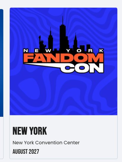 At Any rate, Fandom Con promises other shows – a whole slate of them, including, bizarrely, Fandom Con in New York at the non-existent New York Convention Center (It’s called the Javits Center.)