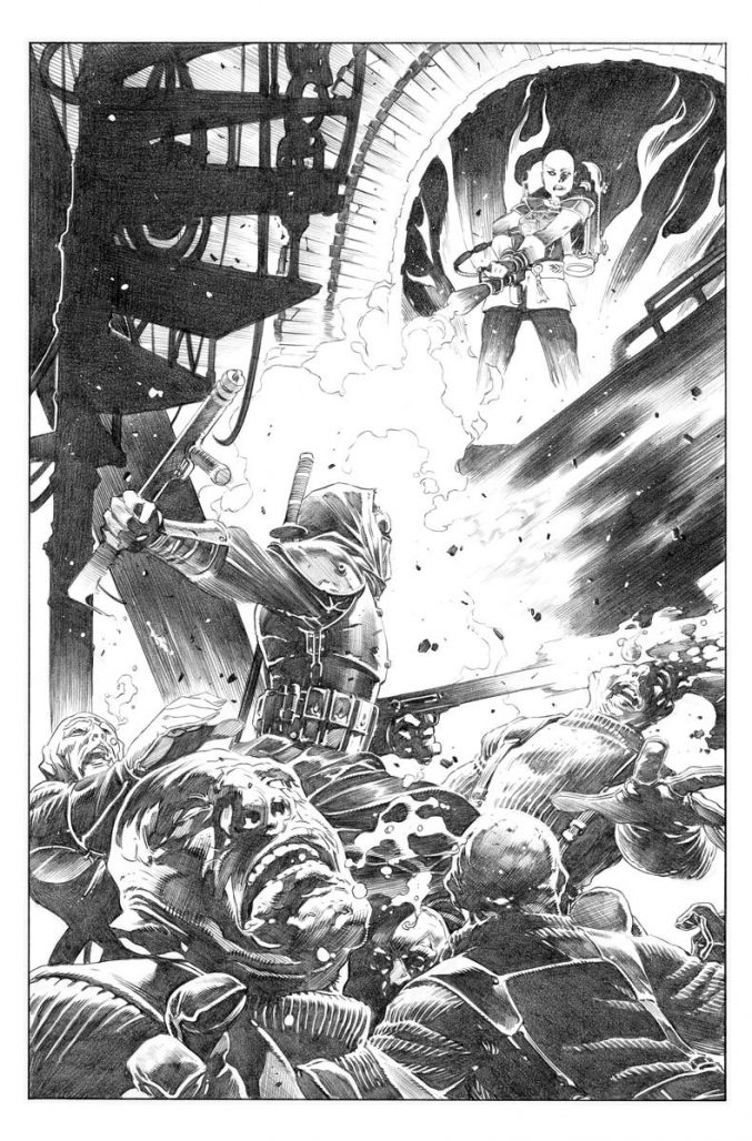 By what those in the espionage business call “coincidence,” we have some of Tomas Giorello’s pencil art from the first issue.