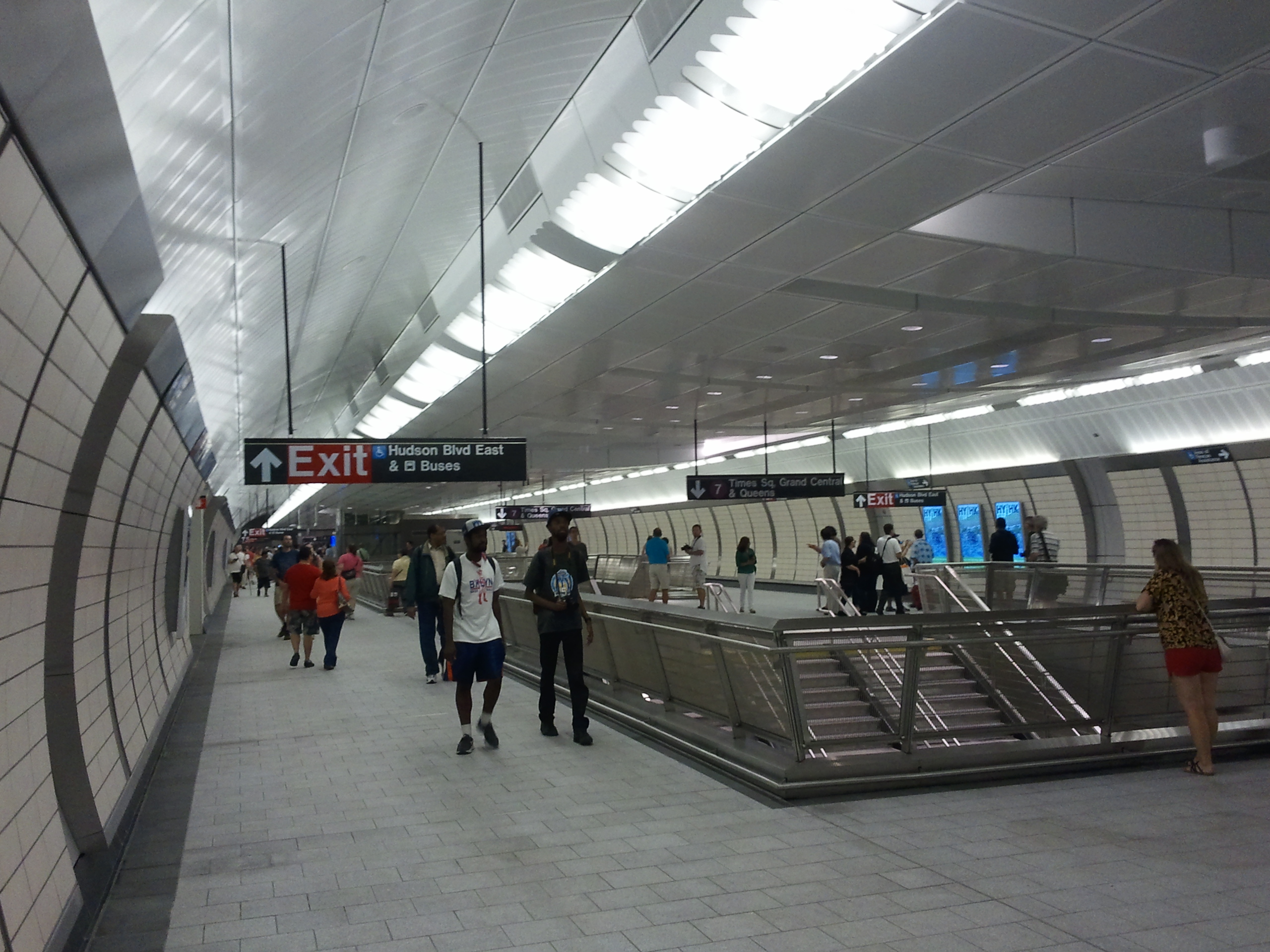 As of 1 PM Sunday afternoon, after numerous construction delays, the new subway station at 34th Street and Eleventh Avenue is open, and running trains on the 7 line, which previously terminated at Times Square.